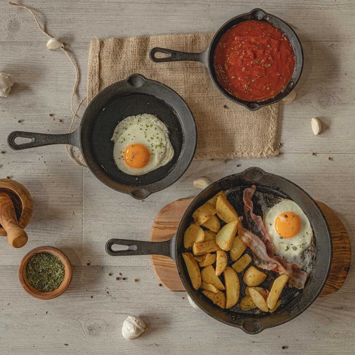 Blackwell Koekenpannenset – Gietijzer – ø 16, 20 En 25 Cm – Zonder Anti-aanbaklaag