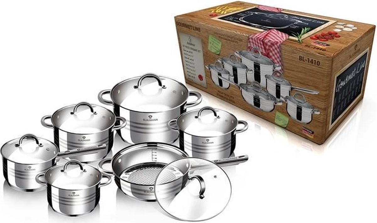 | Verpakkingsinhoud | 12 delige roestvrijestalen pannenset |