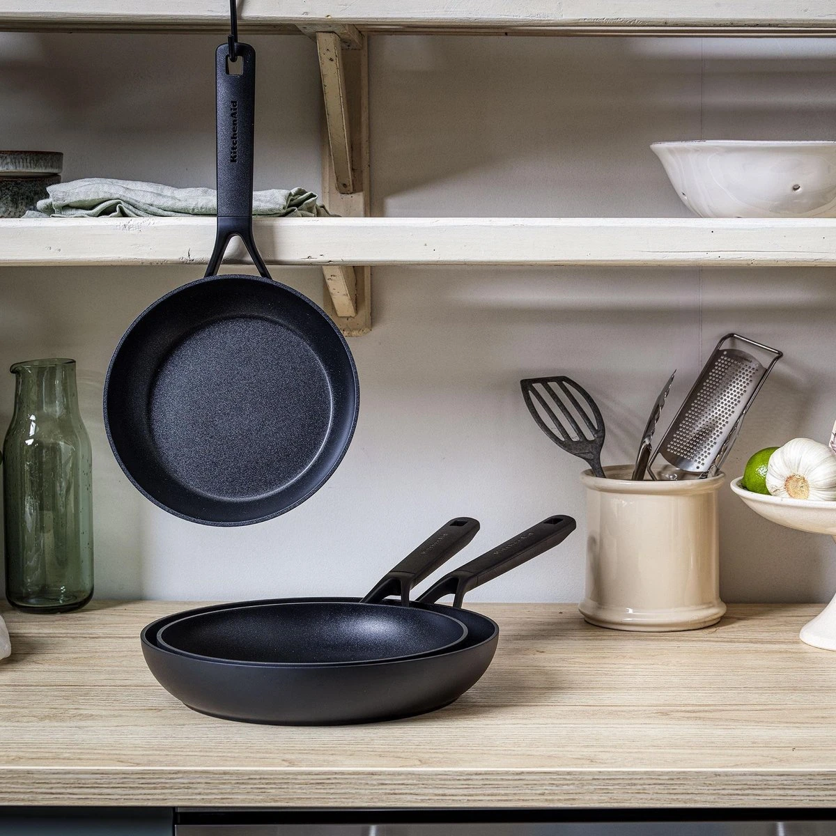Kookfanaten die een tijdloze uitstraling verkiezen, zullen dol zijn op de Classic Forged Aluminium-collectie van KitchenAid. Het strakke, zwarte design en de zuivere lijnen zijn subtiel en toch bijzonder. Een mooie aanvulling voor elke keuken!