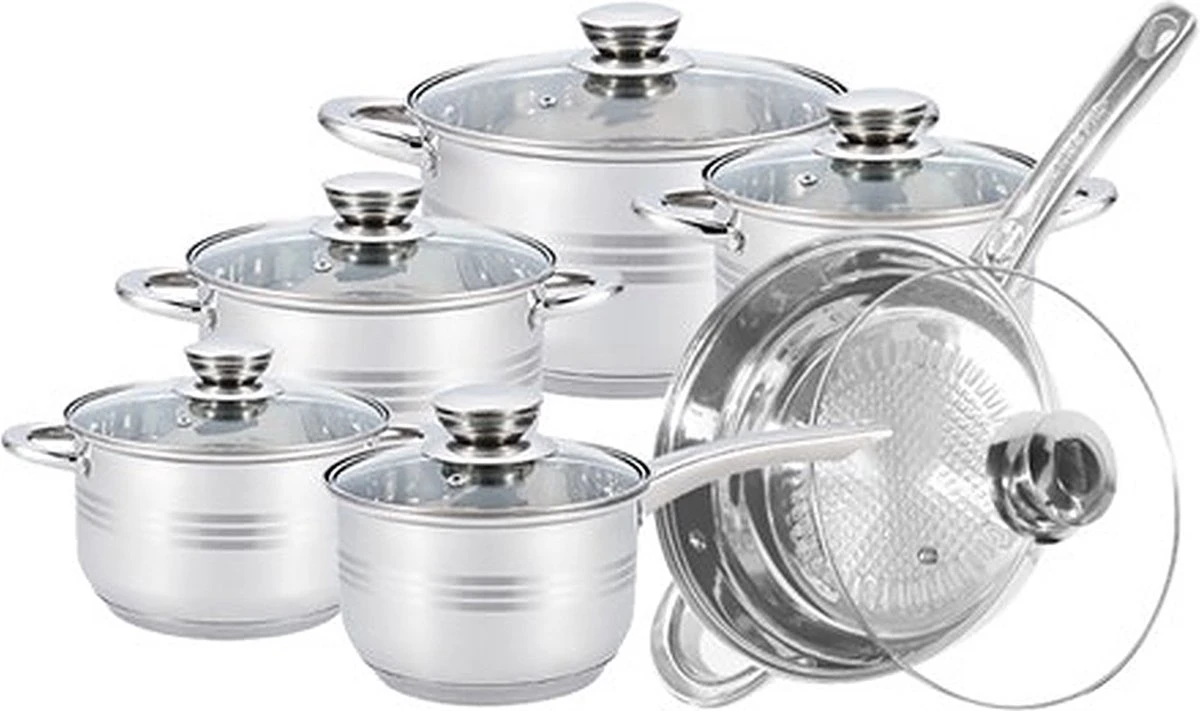 De pannen zijn gemaakt van 18/0 roestvrij edelstaal. De duurzame buitenkant gaat jaren mee. De set bestaat uit maar liefst 5 verschillende pannen. Elke pan heeft een bijpassende glazen deksel.