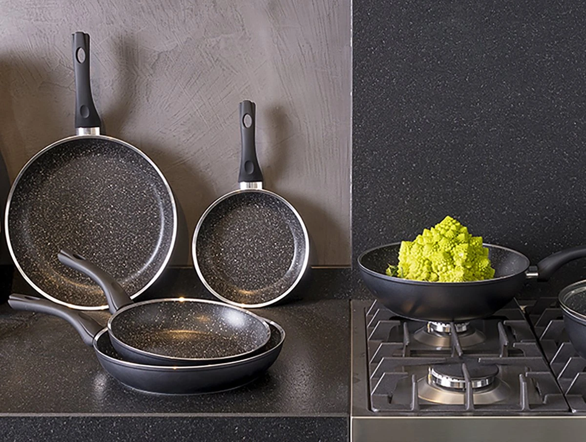 De Stonehenge koekenpannen zijn gemaakt van aluminium en aan de binnenkant voorzien van een non-stick coating in hardsteen decor. Dankzij de non-stick coating blijven etensresten niet plakken en brandt je eten vrijwel nooit aan. Verder gebruik je deze pan op alle hittebronnen.